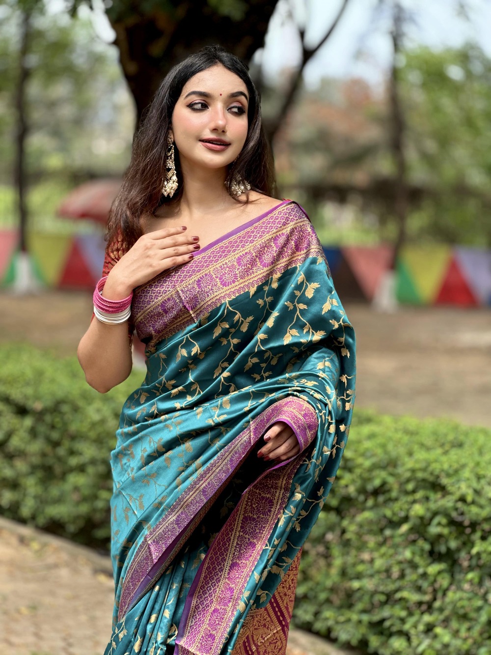 সম্পূর্ণ শাড়ীতে অসাধারণ জরি সূতার কাজ এবং পরতে অনেক আরামদায়ক