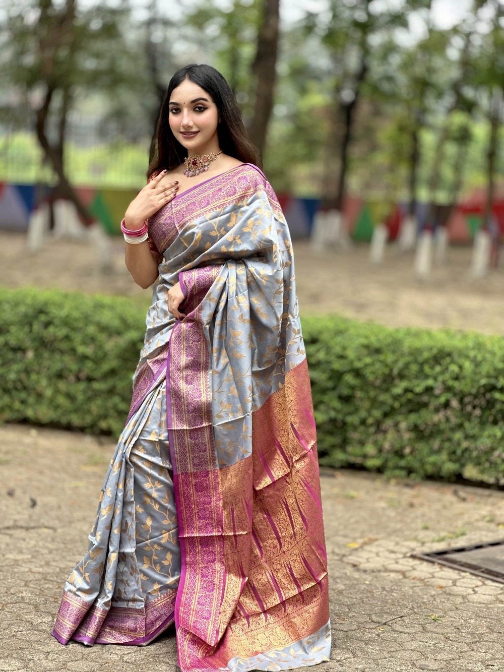 শাড়ী মেটারিয়াল :সফ্ট সিল্ক এর মধ্য গর্জিয়াস কাজ ।