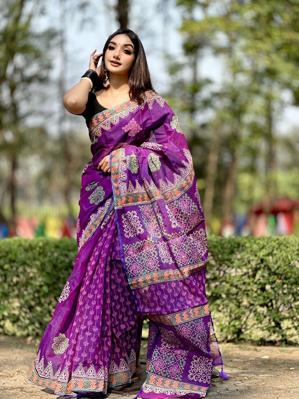 মসলিন ব্লক প্রিন্ট শাড়ী (6)