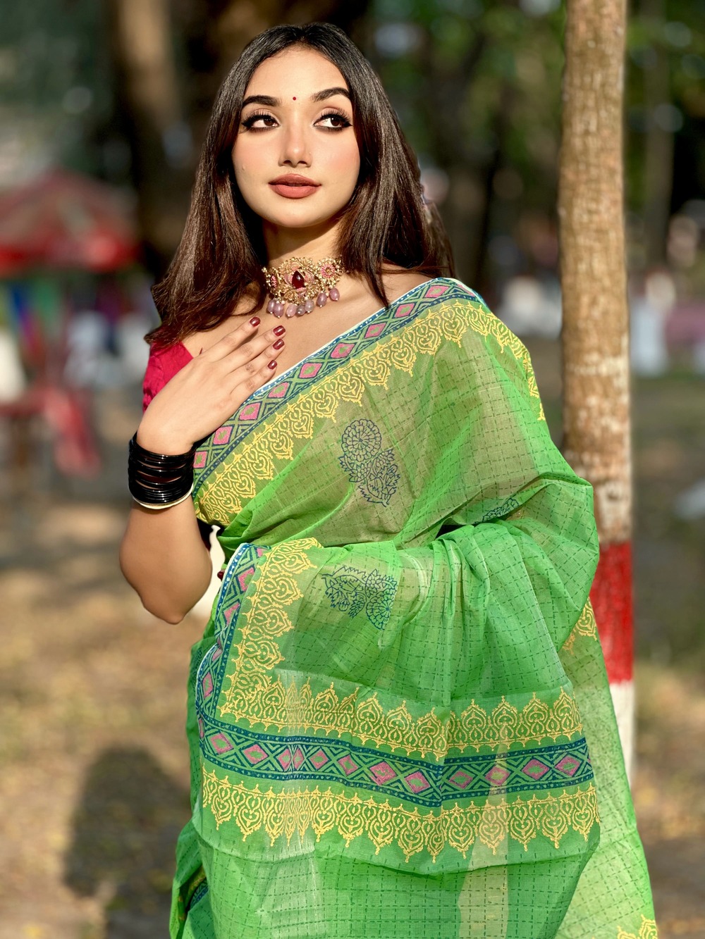 মসলিন ব্লক প্রিন্ট শাড়ী (9)