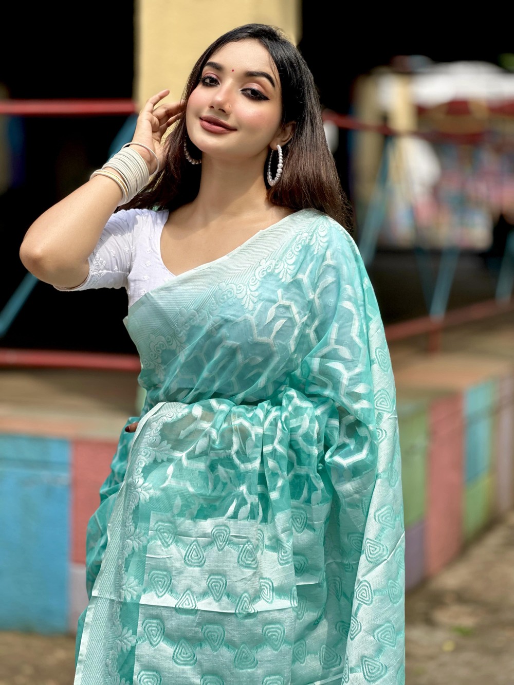 ম্যাটেরিয়ালঃ মসলিন চিকন সূতা দিয়ে জামদানি শাড়ী তৈরি করা হয়েছে।