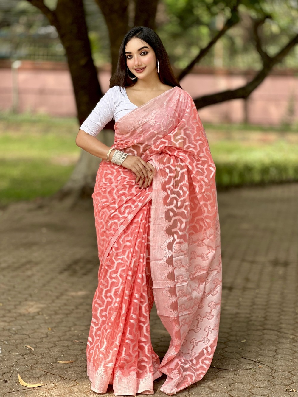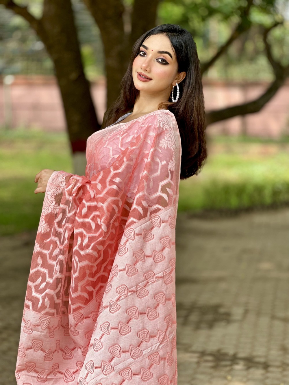 সম্পূর্ণ শাড়ীতে চিকন সূতায় অসাধারণ ডিজািইন করা।