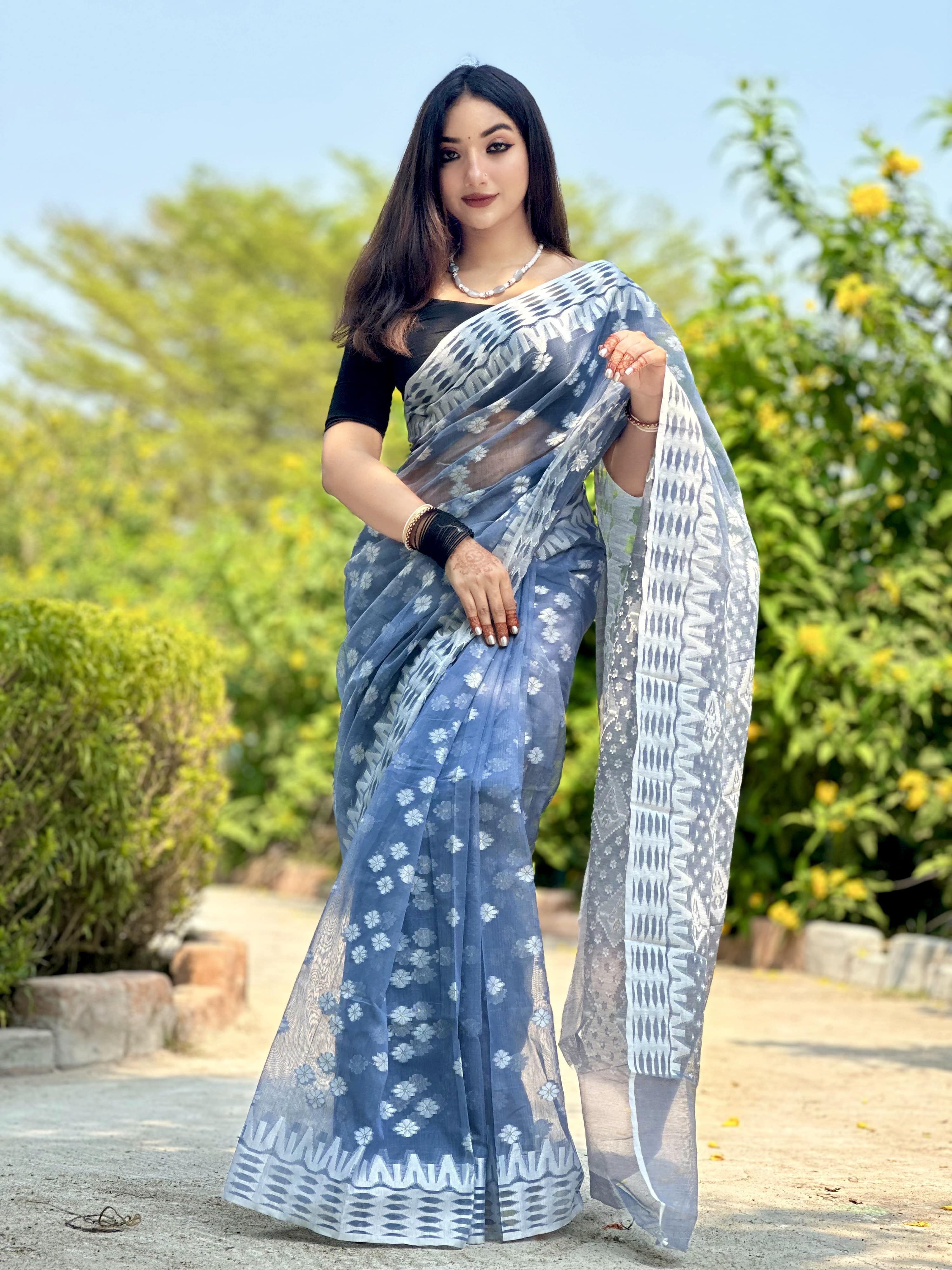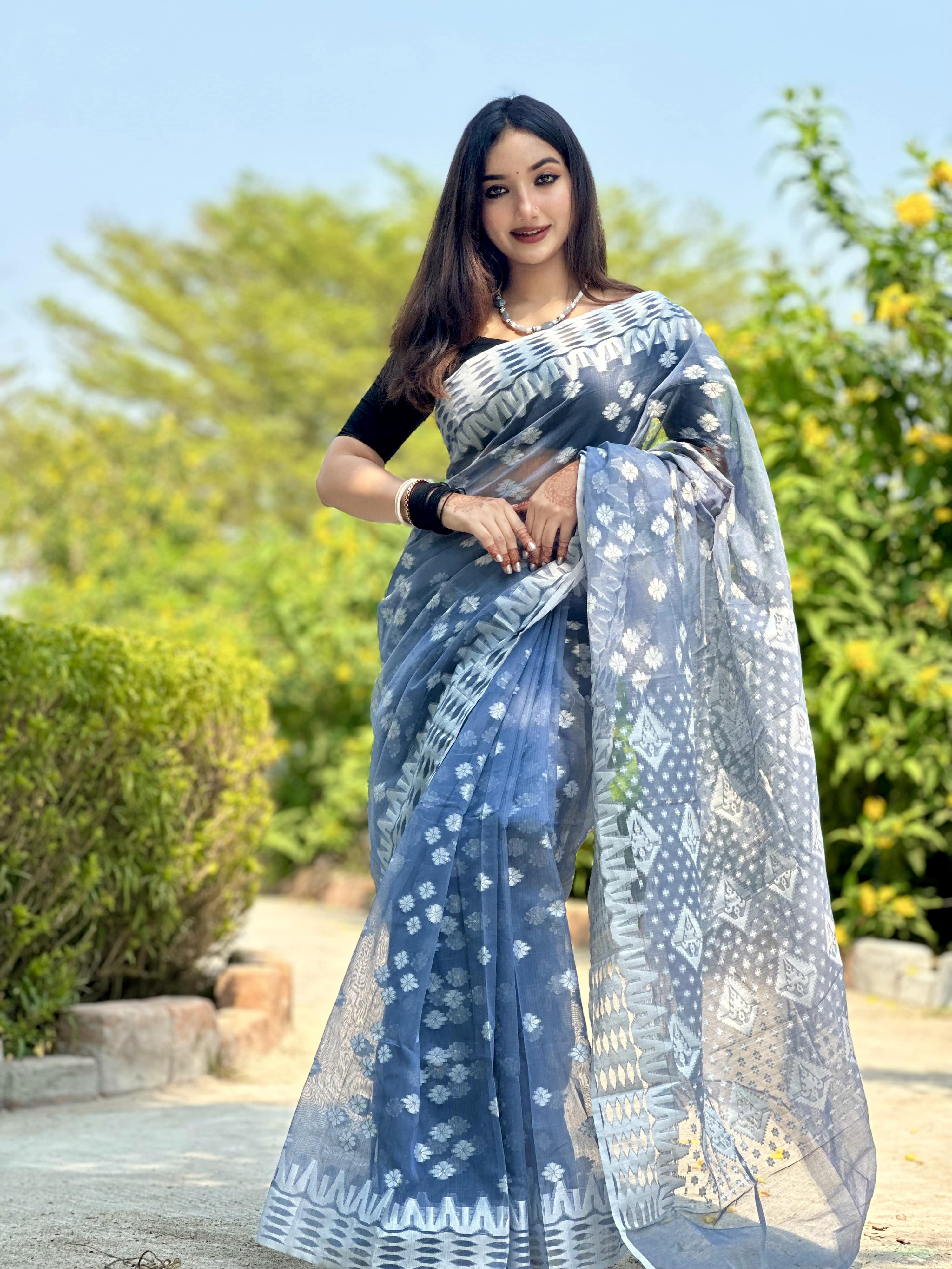 ম্যাটেরিয়ালঃ মসলিন চিকন সূতা দিয়ে জামদানি শাড়ী তৈরি করা হয়েছে।