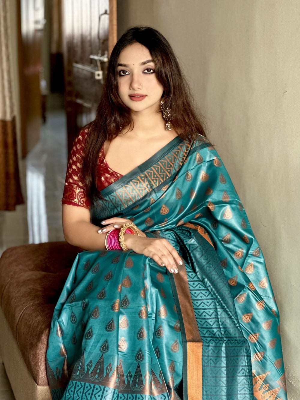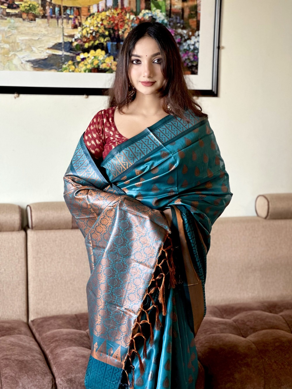 শাড়ী মেটারিয়াল :সফ্ট সিল্ক এর মধ্য গর্জিয়াস কাজ ।