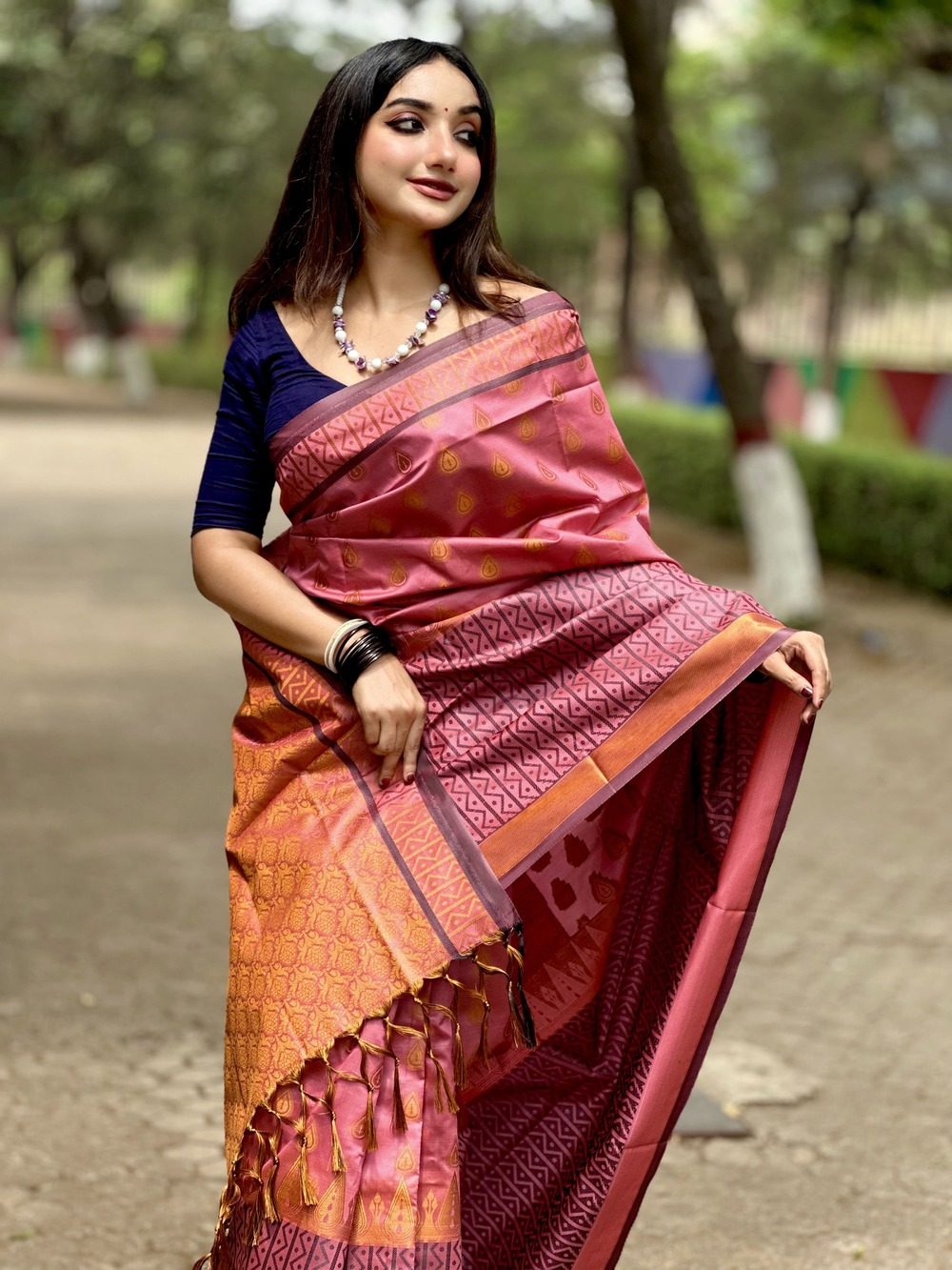 শাড়ী মেটারিয়াল :সফ্ট সিল্ক এর মধ্য গর্জিয়াস কাজ ।